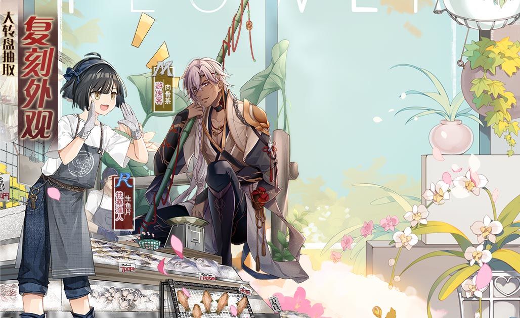 活动描述:活动期间,御侍大人使用道具参与大转盘可获得丰富奖励。转动指定次数还可获R飨灵生鱼片复刻外观-扶桑渔人、M飨灵肉骨茶复刻外观-游侠客及大量游戏内豪华道具。