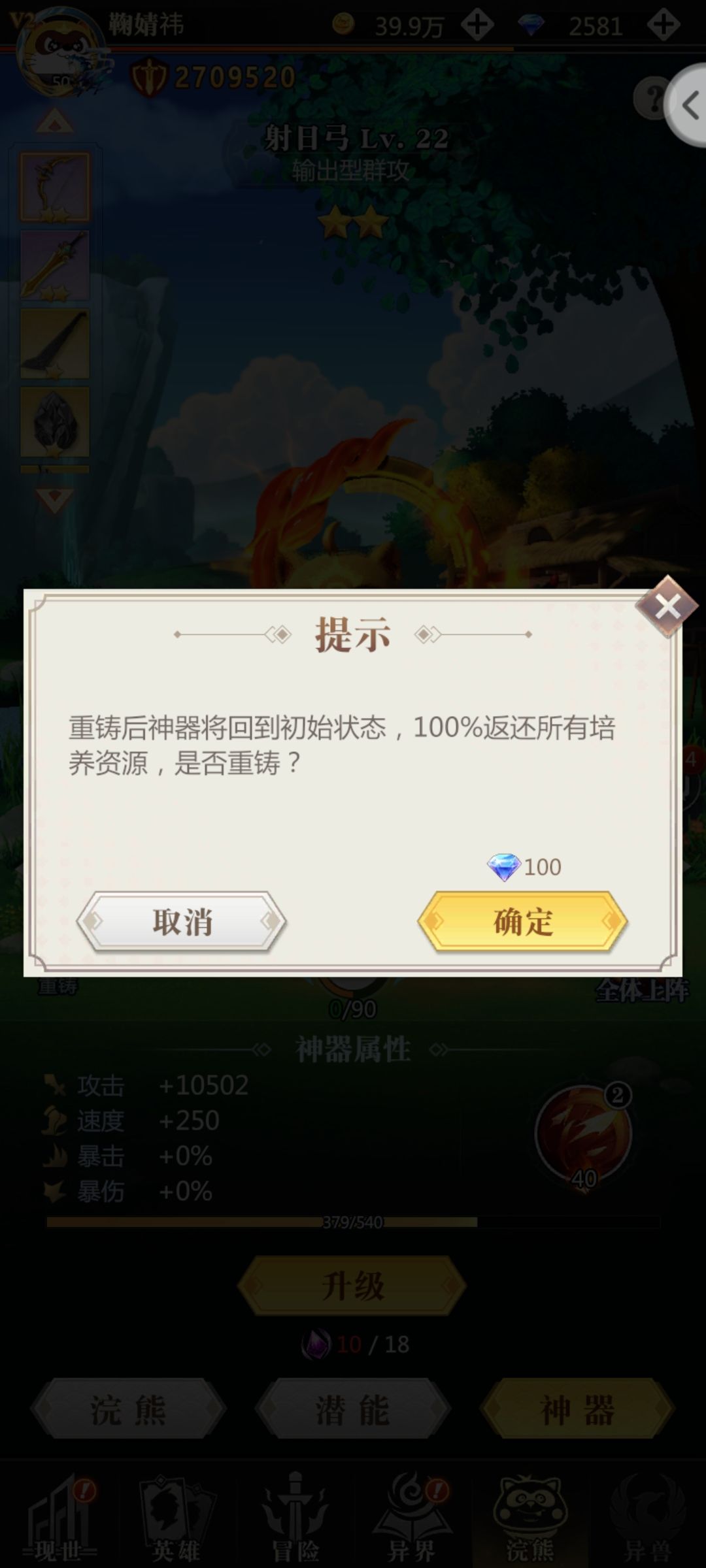 希望大家喜欢,有不懂的不会的可以一起讨教,我经过两次内测的洗礼,已经大致摸清楚了游戏的基本规则和套路,可以拿出来给大家分享游戏体会。#第一 ,冒险之旅,这个不难但是这个是游戏的最主要功能,看图,提升玩家的冒险等级。方法:1.挂机(必须的),2.快速作战,有几次免费机会,但是想提高更快,强烈建议点满,因为这是游戏的主要功能,特别重要。3.为了让游戏更快发展,强烈建议购买专属订购,人民币30元半个月,有了这个后可以每天多增加四次快速作战次数,大大加强了游戏等级。4.充值提升名望,名望等级提升可以提高英雄经验挂机收益。#第二 ,浣熊神器,目前这些神器有八种,通过冒险之旅等级的提升,可以免费领取到三种,惊夜枪,射日弓,指天剑。玩家每次战斗回合只能带三样神器上场。1.这些神器有属性和技能,属性和技能都可以提升等级,需要消耗炼晶石。2.也可以升星,提升神器的星级等级,这个星级等级的提升可以大大提高神器的作战水平,需要消耗神器碎片。3.如果需要换神器提升,可以点神器重铸,这样神器可以有更好的利用。4.浣熊潜能,提升浣熊属性,需要消耗潜能丹,最终提升的是浣熊战力。#第三 ,异界斗技场,排名前128名可以参加精英赛。通过战斗实力的提升,可以与其他同服玩家在此较量作战水平,需要消耗挑战卷,每天也有几次免费机会,这些消耗品都可以在商店买到,也可以通过任务获得。最终通过竞技名次的确定获得竞技声望,有了这些声望可以购买竞技商店商品。#第四 ,幸运转盘,消耗幸运币获得,有概率,选定心愿道具,也可以获得累计次数的奖励,心愿值越高获得心愿道具几率越大,四系英雄。#第五 ,精英赛,斗技场前128名入场比赛,1.首先采取积分制入选32强,2.其次32强采取回合制淘汰制决定各自名次,3.比赛期间可以竞猜系统预定的队伍,竞猜可以获得奖励,会给玩家竞猜币,最后竞猜币兑换为游戏金币。4.比赛前三获得称号,可以点赞。