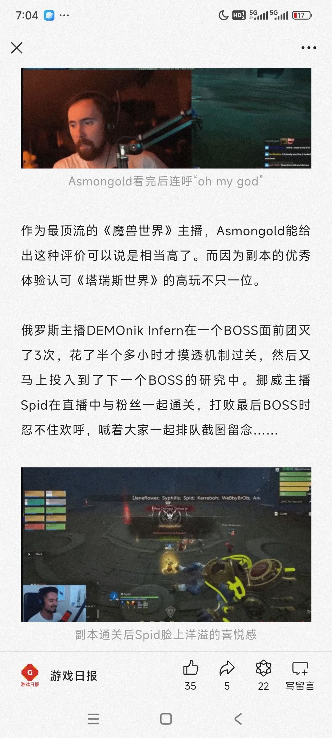 在P3和P4,我们可以看到塔瑞斯在外服早期测试就已经得到了《魔兽世界》顶流主播的关注和好评,同期直播热度甚至超过《魔兽世界》。