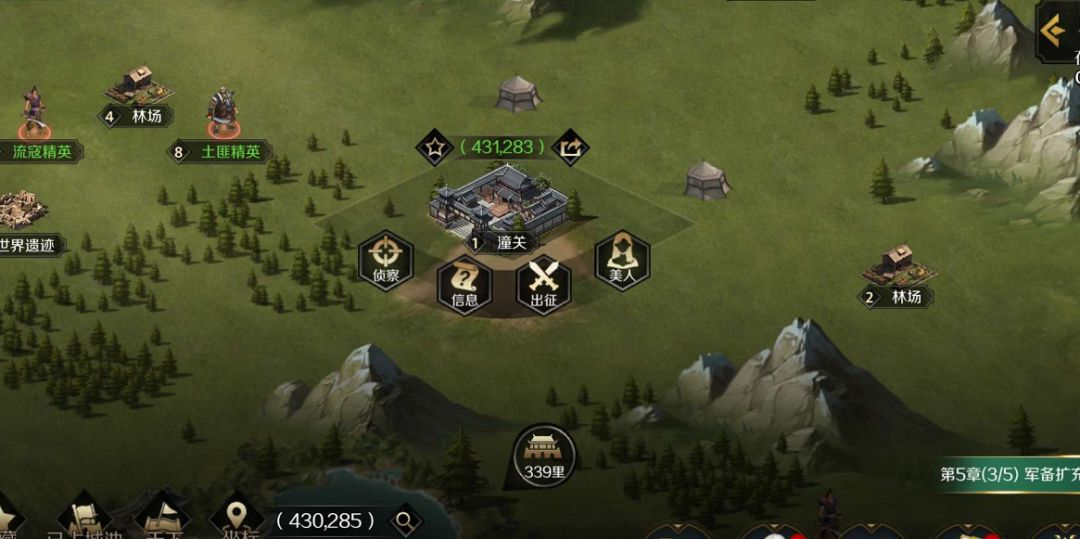 点击城池,会出现侦察,信息,出征,美人四个选择。