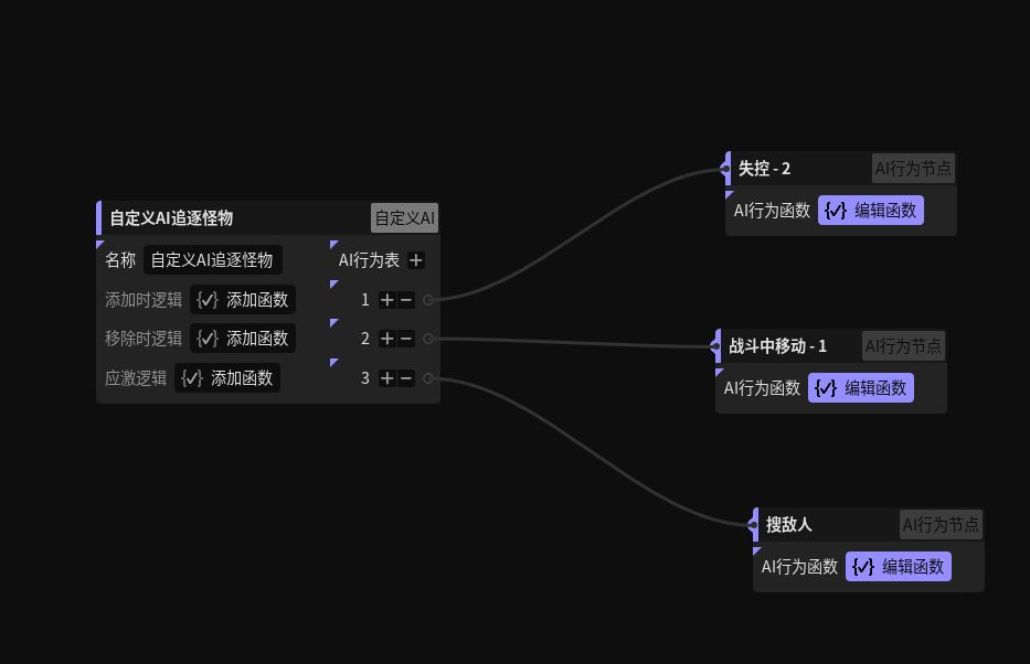 行为表:行为表在返回真的时候会停止这一轮行为树, 返回假的时候 跳过当前AI行为表,执行下一个AI行为表