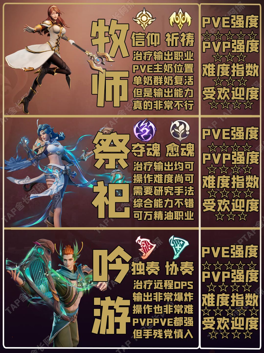 其实塔瑞斯的职业体系分为战士类,输出类和治疗类