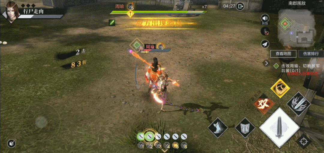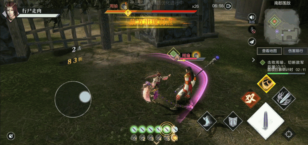 敌方将领一般都有狂暴状态,当与周瑜交战进行4分钟之后,周瑜便开始狂暴,进攻频率更快,伤害大概翻了十倍,正常战力想要和狂暴周瑜打,难于上青天。所以小霸王们最好在4分钟之内,击败周瑜,或者将他打成残血。