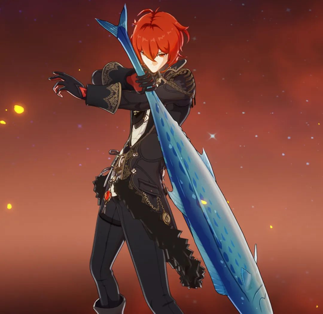 咸鱼大剑的原名叫“衔珠海皇”,这把武器的外观相信大家看一眼就不会忘记,真的确实太有特色了,手里像是拿着一条大鱼,因此才会被玩家称为“咸鱼大剑”。这把武器在2.1版本的限时活动里面可以获得,直接白嫖精5,不过现在已经绝版了。这把武器强度并不高,主要是收藏价值。