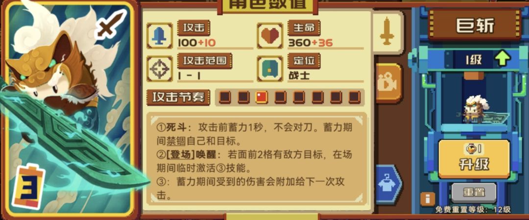 但是,巨斩的身材一言难尽,360的血量在三费之中只能是中规中矩,而且巨斩两秒攻击一次导致他会受到更多的伤害,肉度完全不达标。