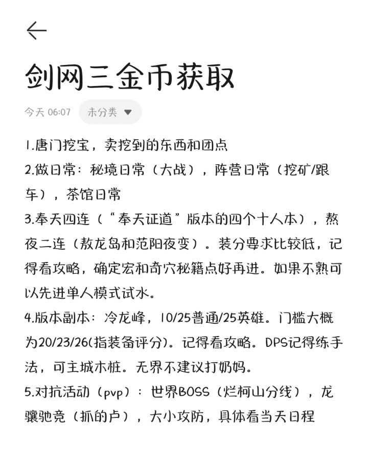 注意进本之前要看一下手法。dps的话记得看剑网三魔盒(是网页),看对应的职业需要点的奇穴、秘籍和技能手法(有些可以一键宏,没修为可以做门派地图的“勤修不辍任务”和门派打坐),可以对着主城或者帮会地图的木桩练习。金币赚取写图二了。
