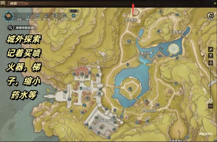 城外没有特定任务等,地区开放后,直接按照图片所示自动导航即可。