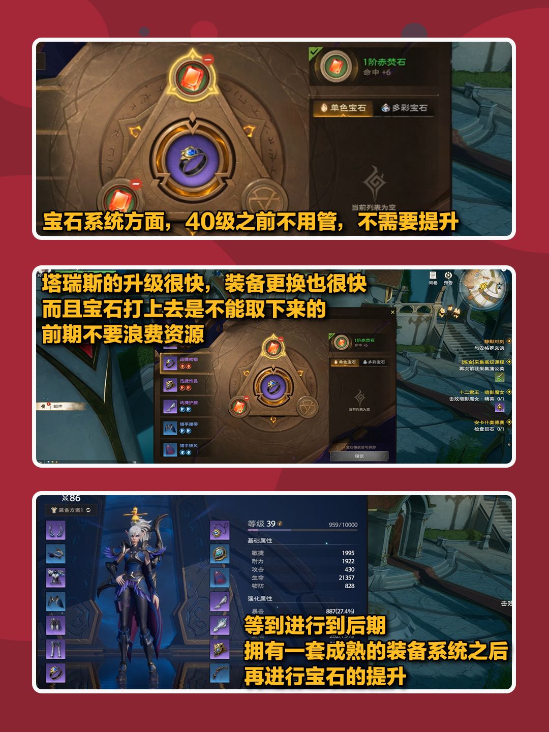 11.塔瑞斯的升级很快,装备更换也很快,而且宝石打上去是不能取下来的,前期不要浪费资源