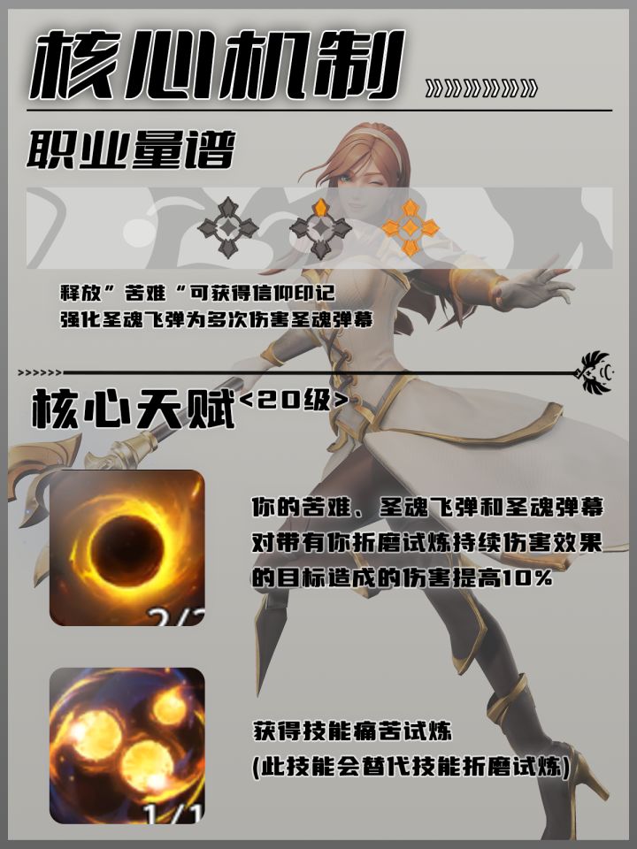 神罚是牧师的输出天赋,虽然牧师优先作为奶妈职位,但是其输出能力也是非常不错的。不论是折磨试炼还是痛苦试炼,在副本中的伤害加成都是非常高的,具体使用只要根据输出环境来切换就可以了,当然千万别忘了控制好印记获取的节奏。
