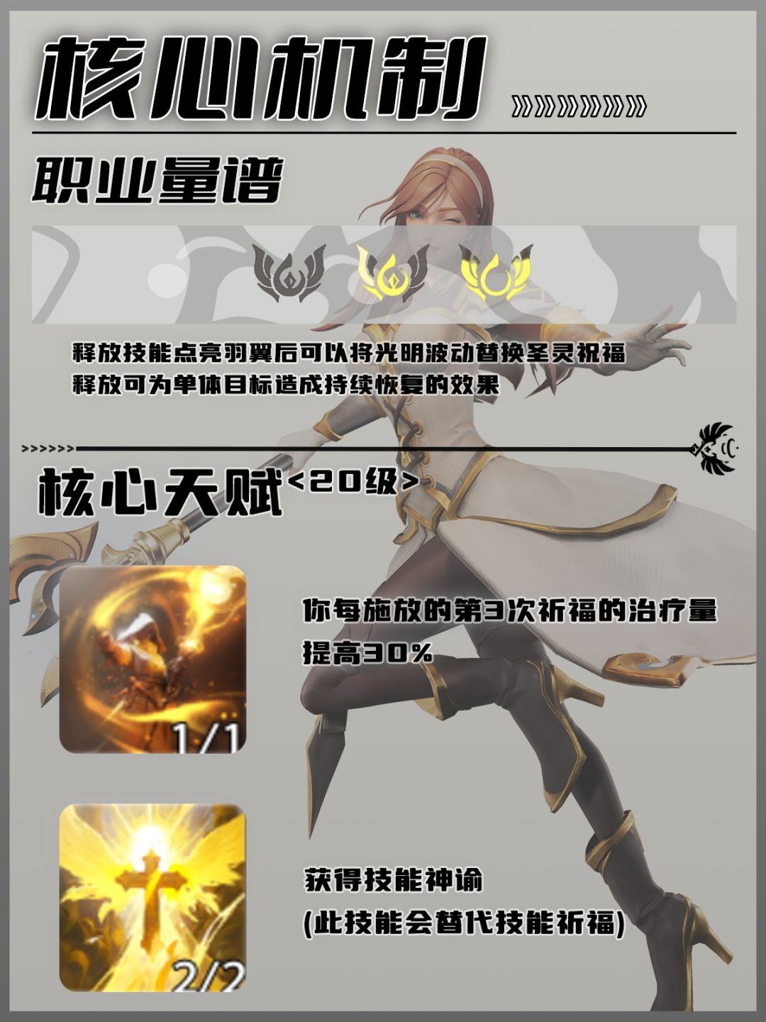 神恩则是神罚的治疗天赋,同样有着两种流派“祈福”“神谕”。祈福流派治疗能力更为灵活,可以移动治疗,不过单次奶量有限,需要维持技能的连贯性,保证队伍血量,推荐在需要多次移动的副本中使用。神谕则与祈福相反,单次奶量提升,但是需要读条,导致无法快速移动。所以需要提前预留好即时释放的治疗技能,避免队伍治疗断档导致减员。#塔瑞斯世界开荒征集 #塔瑞斯世界 #攻略 #游戏安利
