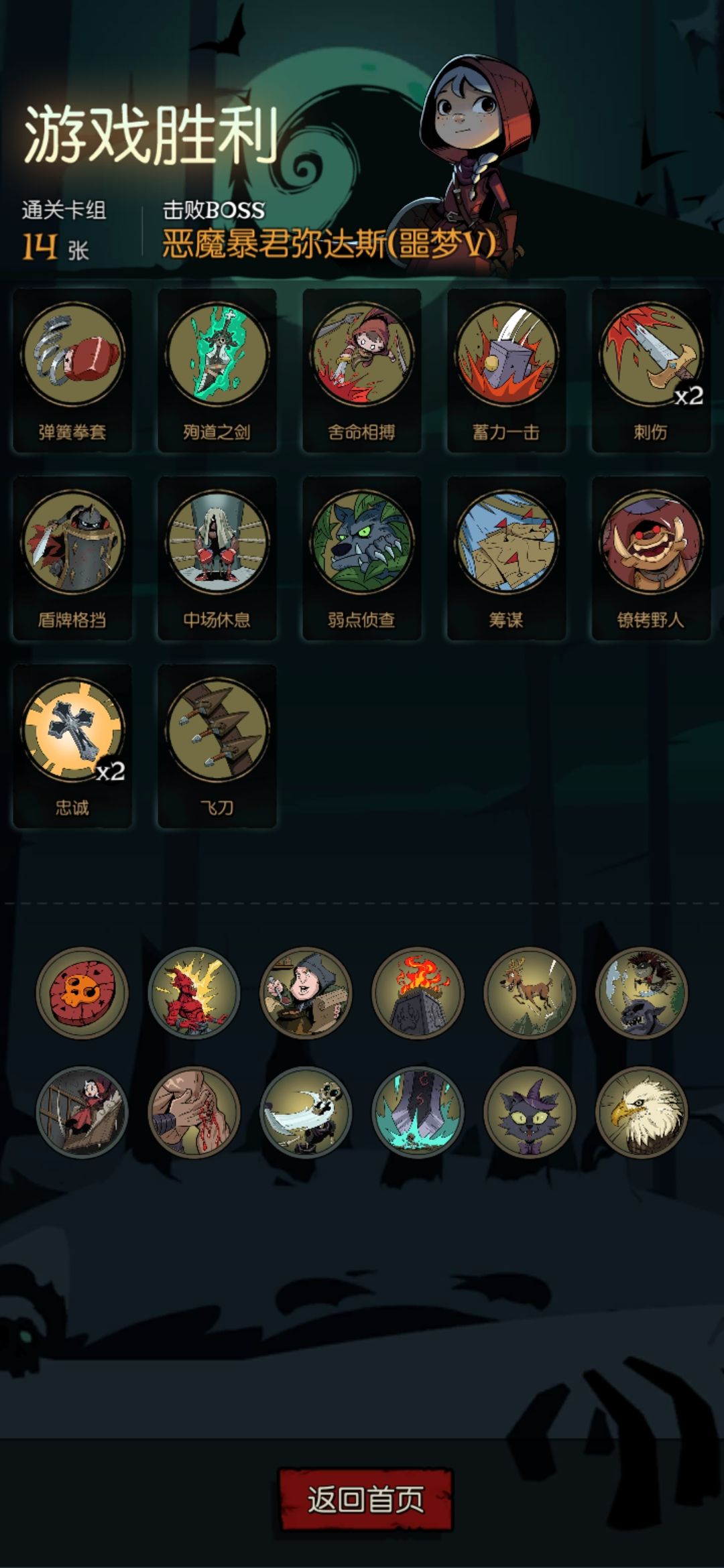 开局自带牌选镣铐野人(效果是敌人损失百分之20生命),强力武器用拳套,祝福因为有引导。很容易拿到伤害翻倍,直接百分比就能秒杀,不需要运气太好拿多张自残牌,成型难度低,威力巨大,推荐新人使用