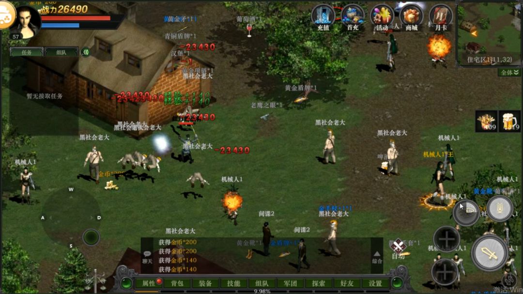 3. 装备选择:不同职业需要装备不同的武器,也需要装备防具,玩家可以通过搜索功能获得大量的经验、金币、武器等物品。