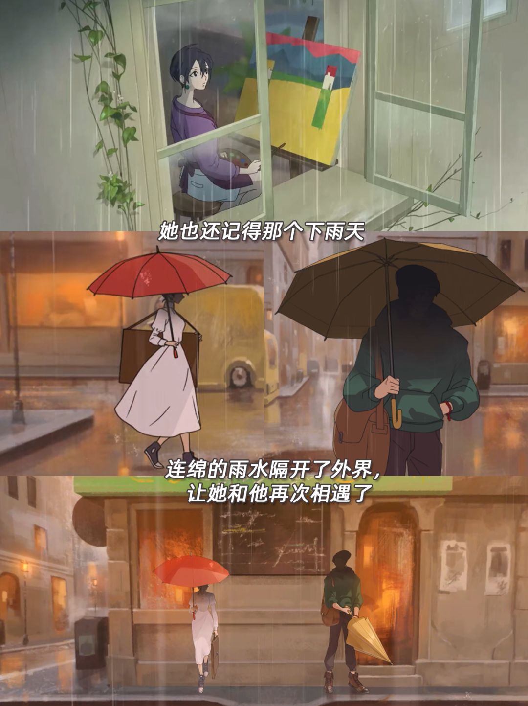 女主视角在绘制一幅幅画作🖼的过程中讲述过往。在最终揭晓真相时反转与冲击力满满,让人忍不住落泪😭结局的画展上,年老的女主也终于看见了男主为她画的画,明白了他们那段错过的爱情…