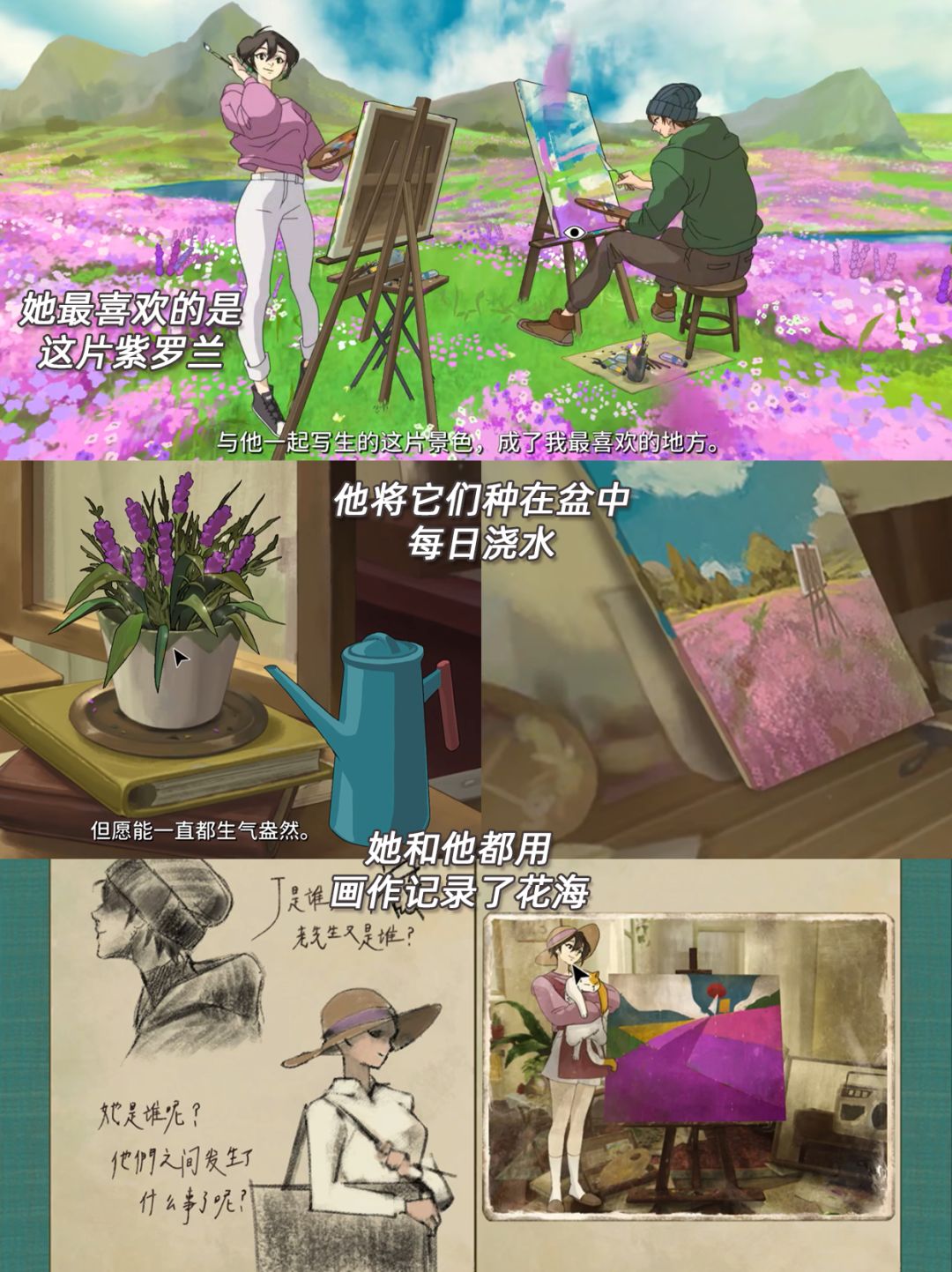 作为一个关于画家的故事,游戏采用了吉卜力手绘风格以贴合设定。你也将拿上画笔🖍,绘制一幅幅关于过往的画面,揭开尘封的故事。