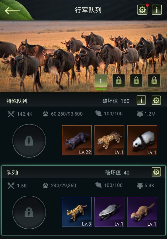特殊行军队列:在特殊的行军队列中,野兽会有特殊加成,加成的属性根据领主的习性而定。因此可以将领地内最强的野兽放在特殊队列中,将收益最大化。