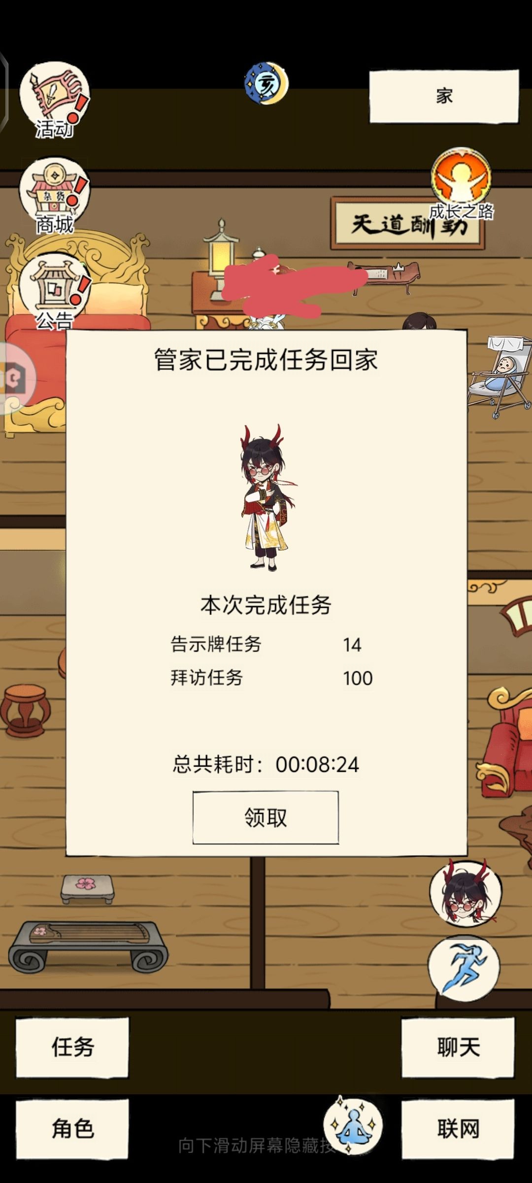 8,买了管家的,让他去做任务,需要时间,可以退出再进,然后就能直接领奖励(有时候不行,要等一下,很奇怪)。