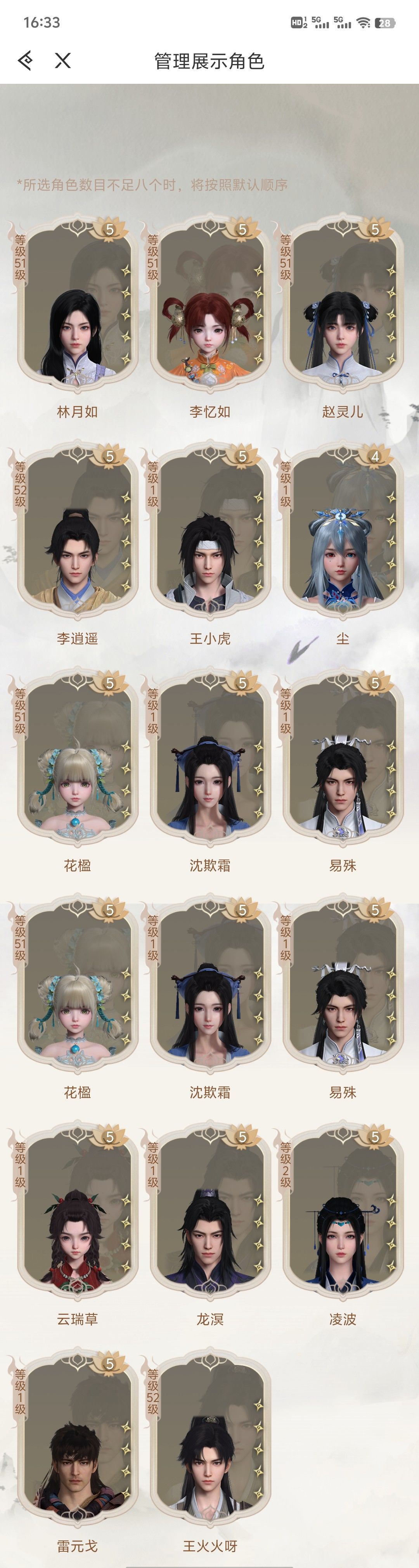 除了尘差一个满星,其余角色均已满星。武器林月如的鞭子满星,李忆如的伞2星,赵灵儿的天蛇丈3星,尘的霜笛1星。总共消耗25万+灵石