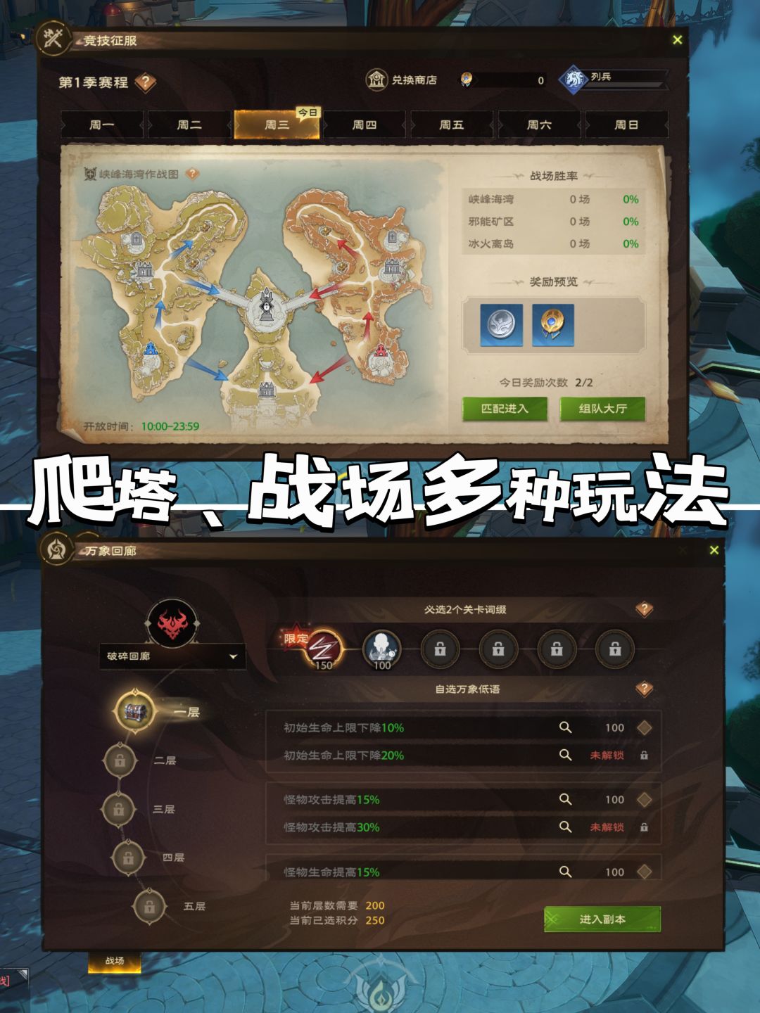 💕战场、竞技和副本均可以跨服匹配,即便和好友在不同的服务器也可以一起玩喔。
