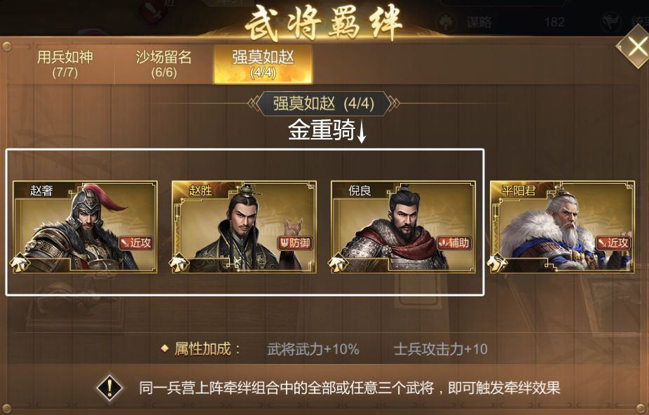 强莫如赵 羁绊 武力+10% 士兵攻击力+10