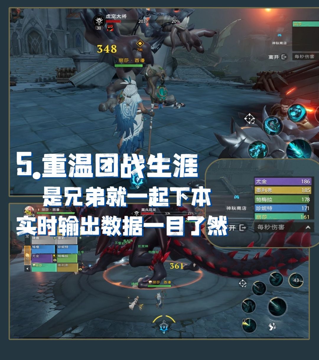 游戏副本难度有三种可选,从5人本到10人本,可以根据自己的玩法加入队伍,怪物技能需要团队配合打断,实时现实输出数据,让战斗更加刺激!