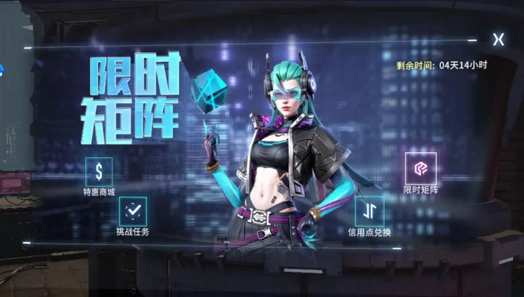 活动简介:限时矩阵活动是一个持续7日的轮巡活动,内含任务挑战、商城兑换等玩法,完成任务将获得晶核、抵扣券及大量稀有道具,共分为[特惠商城]、[挑战任务]、[信用点兑换]、[限时矩阵]四个模块。