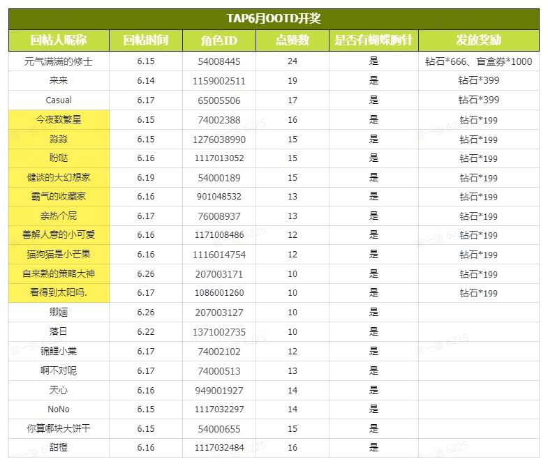 【开奖公告】本次OOTD活动中奖情况如下,恭喜以下中奖玩家,我们将在7个工作日内将奖励以邮件形式发放至三小姐的邮箱中,还请留意查收!