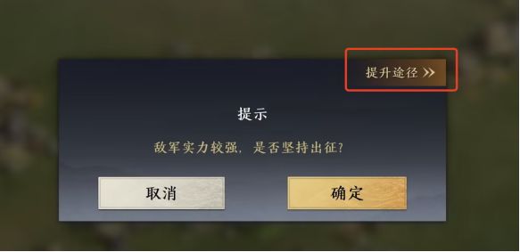 12、 攻占地块时,记得查看地块信息及守军实力,可以前置思考应对策略防止翻车损耗,如果系统提示【敌军实力较强,是否坚持出征】,一定要三思后行。可以跟随【提升途径】指引,考虑提升武将、战法等级,也可以建造军营(内城君王殿6级后)提升武将带兵数量。
