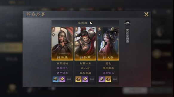 26、 当不知道怎么配队的时候,孙大盛(孙策、大乔、徐盛)永远是你最佳开荒选择,记得选择适合他们的战法。(可以在聊天界面问乔妹助手)
