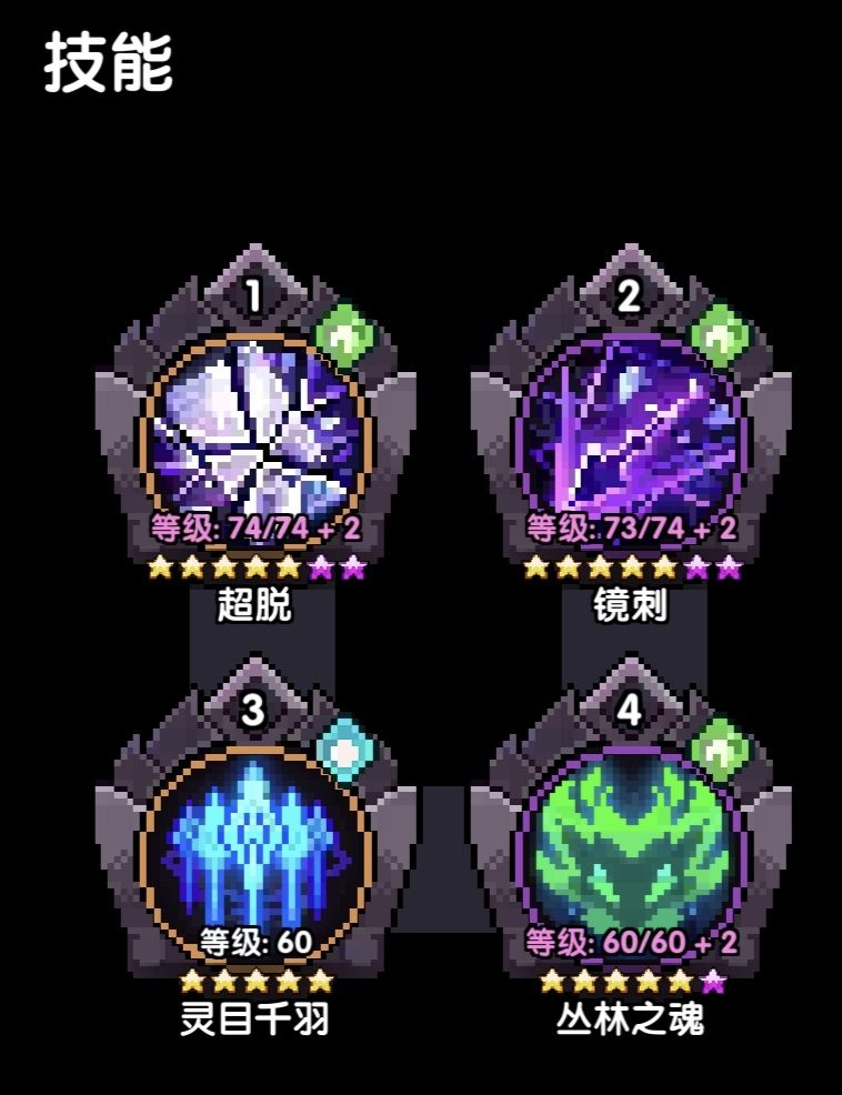 2、因为本次跨服打的列拉金,如果不是为了极致伤害的玩家,可以把“(天国)丛林之种”+“(游侠)凌风”换成“(天国)圣灵法阵”+“(游侠)丛林之种”。这样就不容易死了