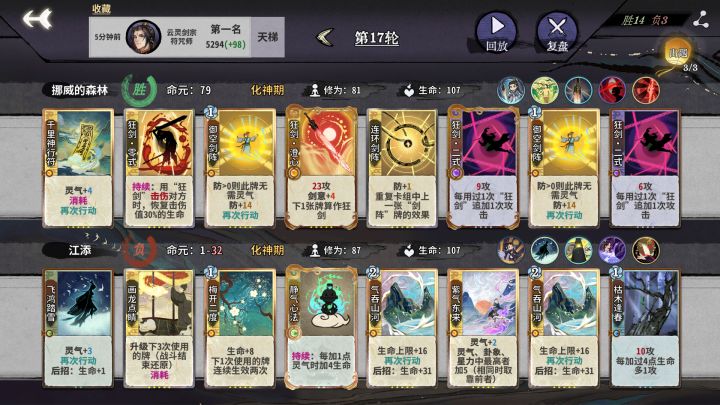 4化神期备选仙命:为澄心剑胚选择狂剑·澄心:加3攻,下1张牌算作狂剑。