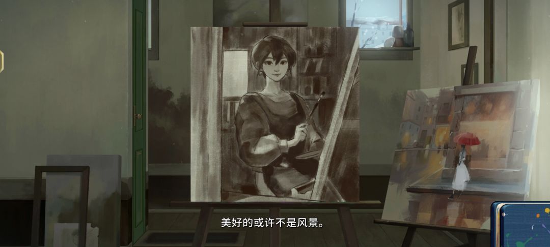 这里的Amber是很空洞的,她身处的这个房间,有很多画作是她自己不清楚的。