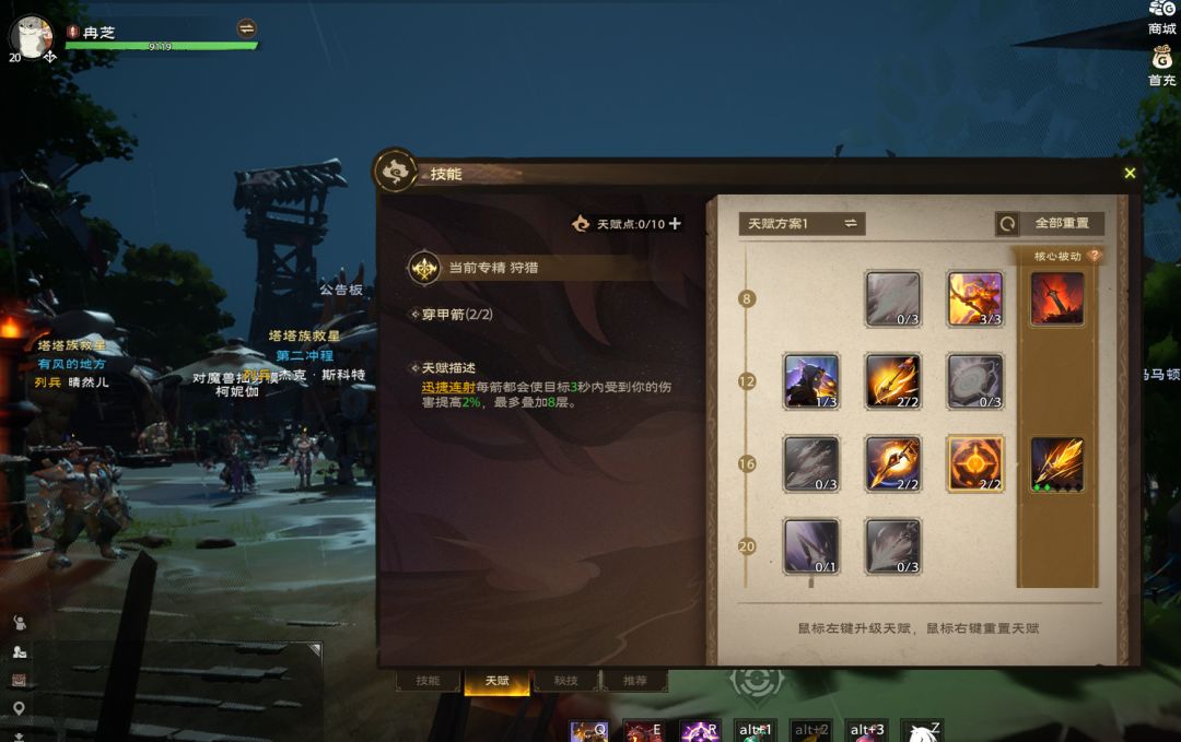 猎手之心→腐蚀之箭→迅捷连射→狙击射击→平稳射击→扩散射击