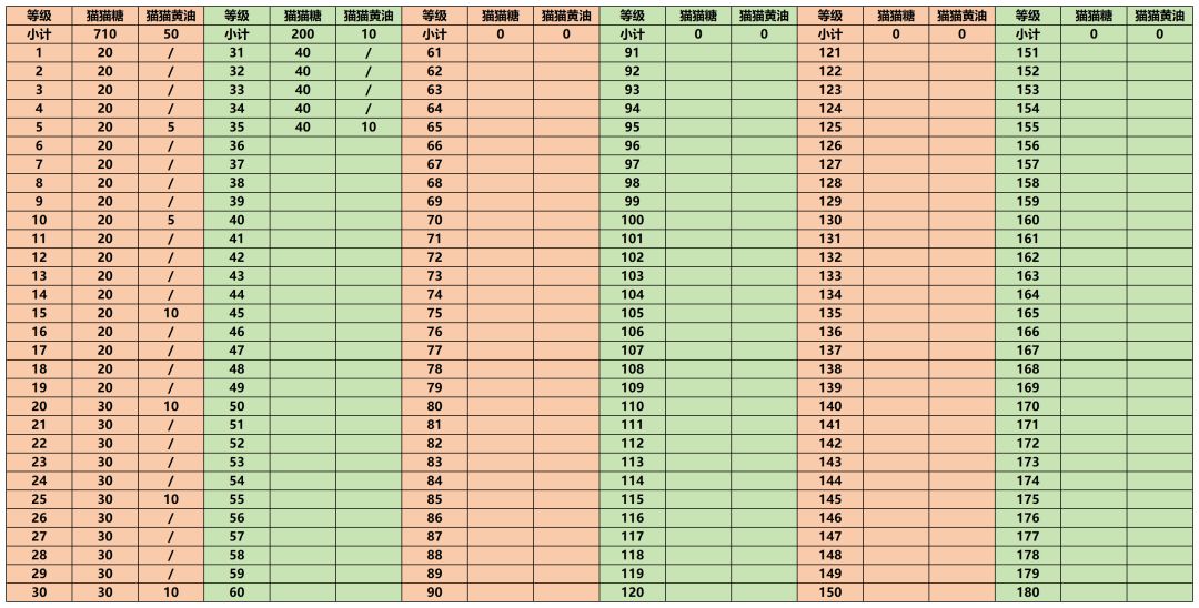 我们正常培养即可,建议猫猫包等级平均提升,养到7级即可解锁4个猫猫包位置。升级条件和具体效果见下图:
