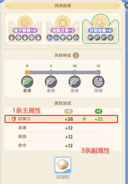 风味可以提升属性,主属性每次升级都会提升,副属性在风味等级达到5/10/15/20/25级时才会提升。
