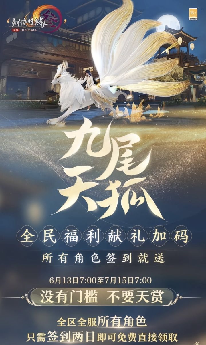 【剑网3无界】签到2天直接送九尾天狐坐骑!