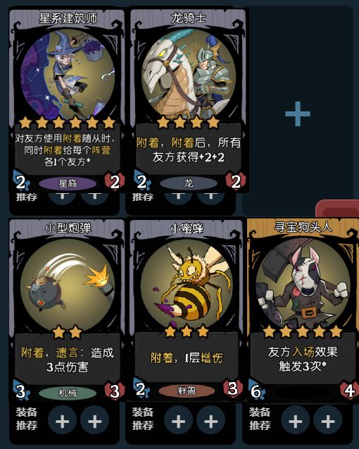 阵容搭配:星系建筑师(简称贴膜爷爷)+龙骑士+小型炮弹+小蜜蜂+金狗头人