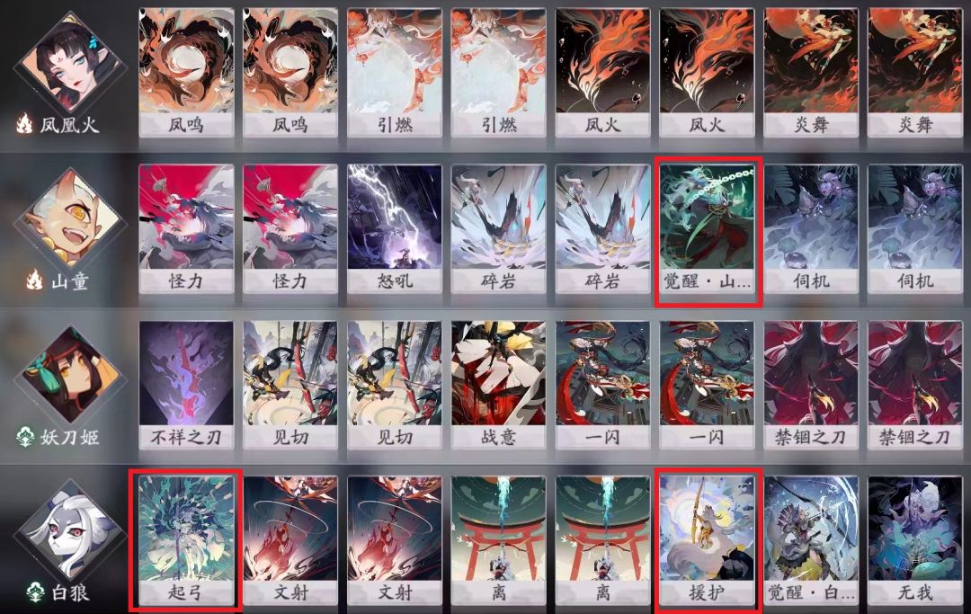 山童不带觉醒,带形态。白狼不带援护,满编起弓(赌先手穿刺抢4血)或者一勾形态带1。