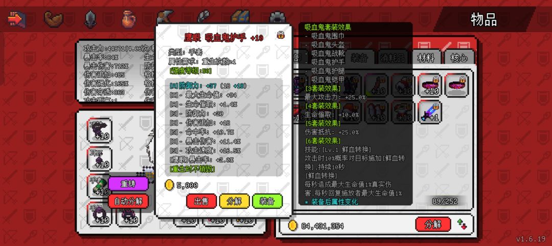 收集到死神套和吸血鬼套后,可以反复“重铸”刷“命中”属性,方面后续重生升级。