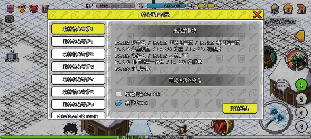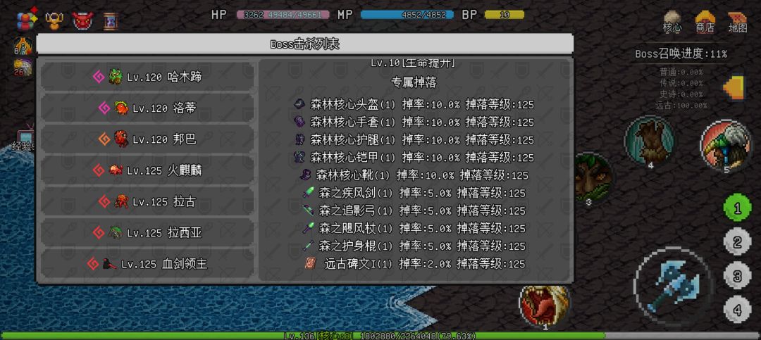 这个阶段,已经能刷到所有boss了,森林核心百分之80击杀“拉西亚”掉落“森林核心套装”,推荐不想继续转生之后有装备基础再去刷。