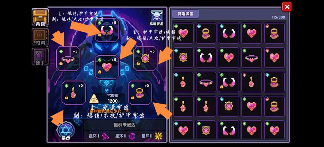 如果元穿差的很多,中间的魔角和心可以换成一阶外装(主属性元穿)