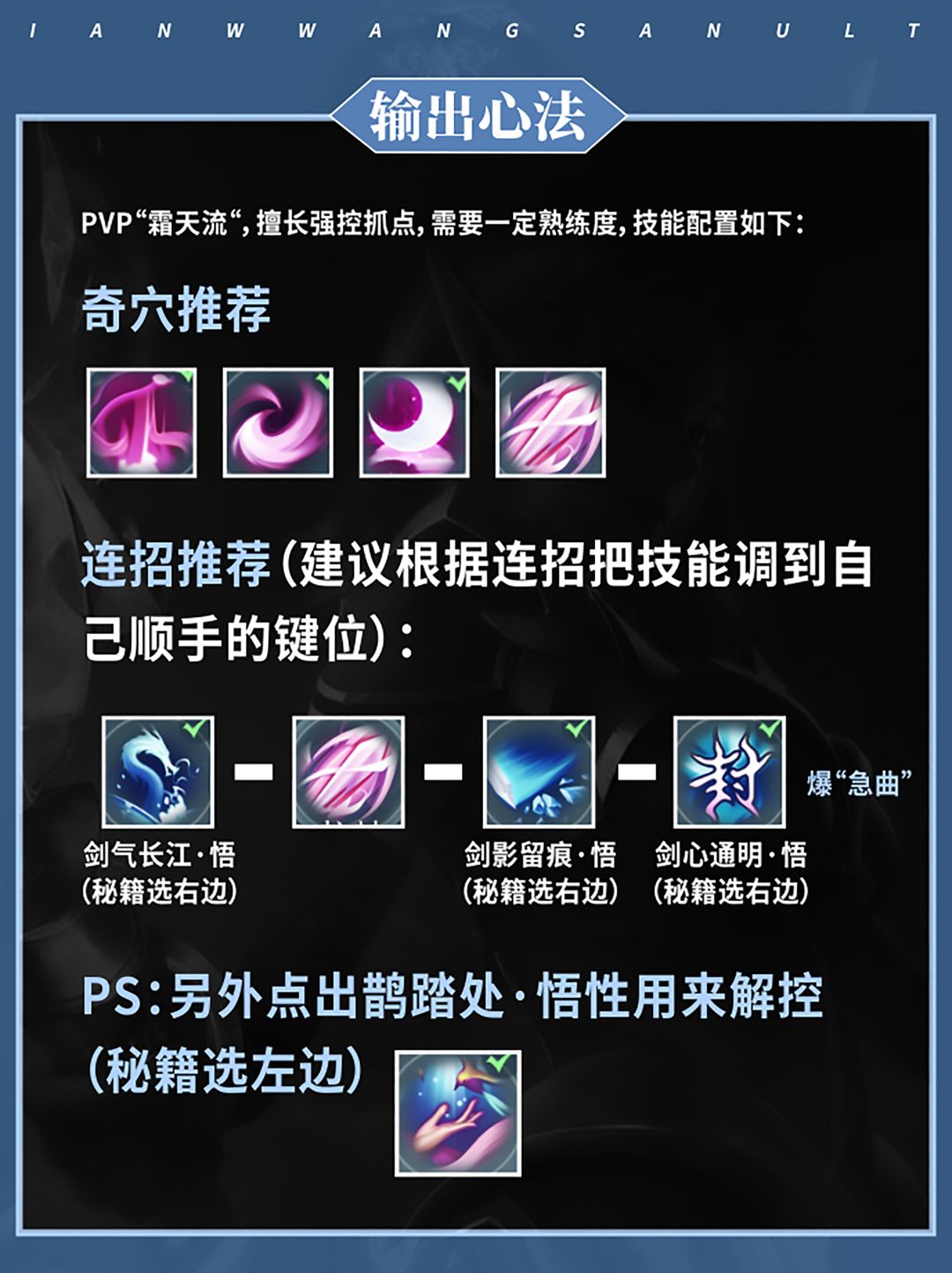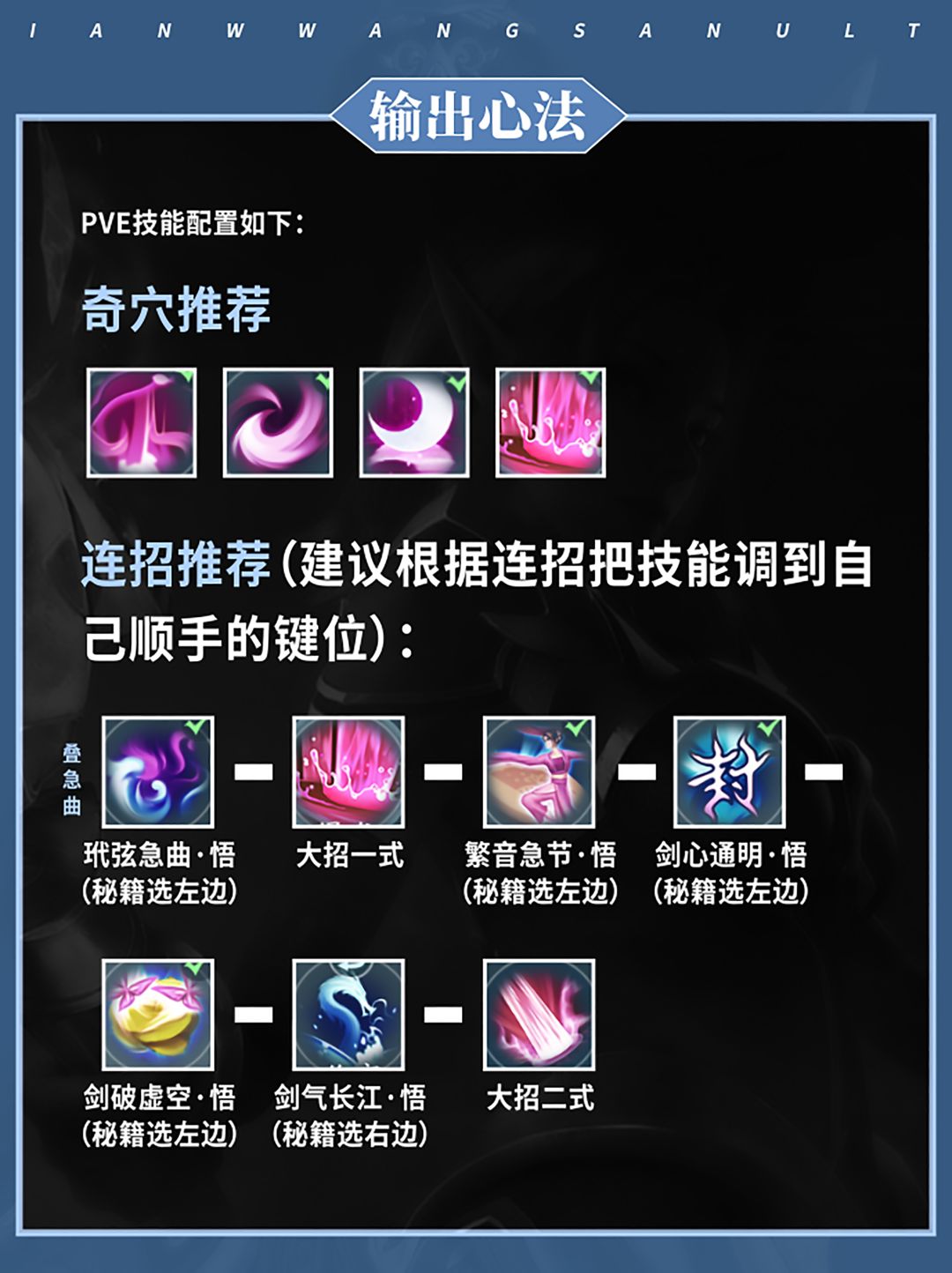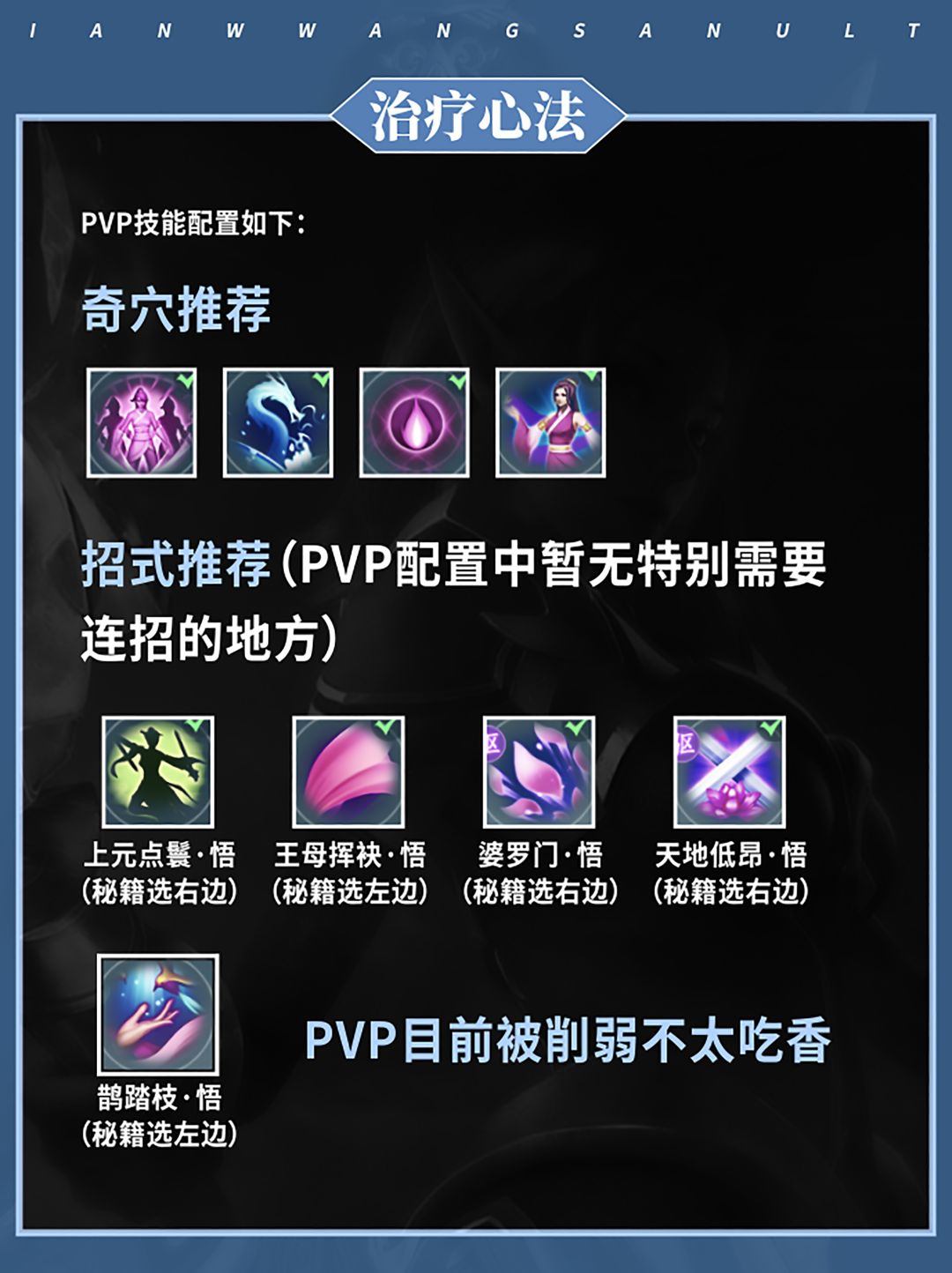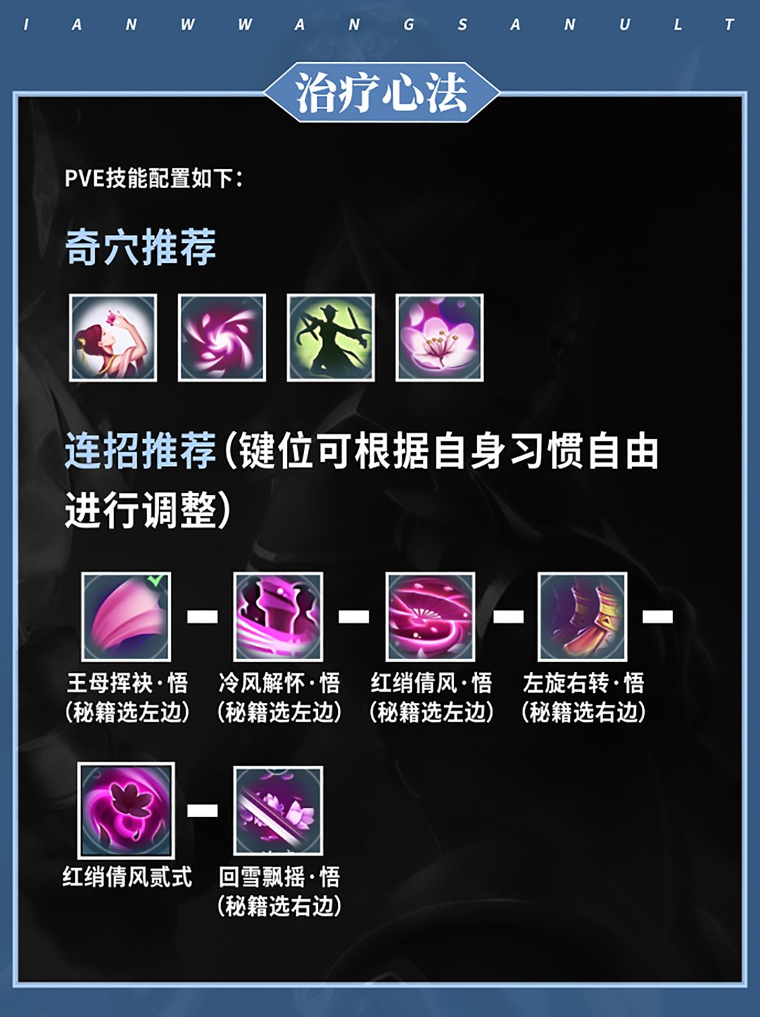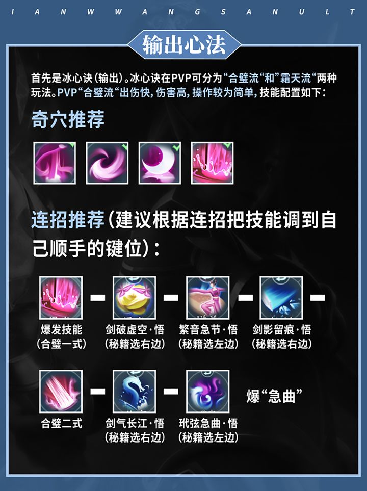 其两个心法分别为:“冰心诀”(输出)和“云裳心经”(治疗)。