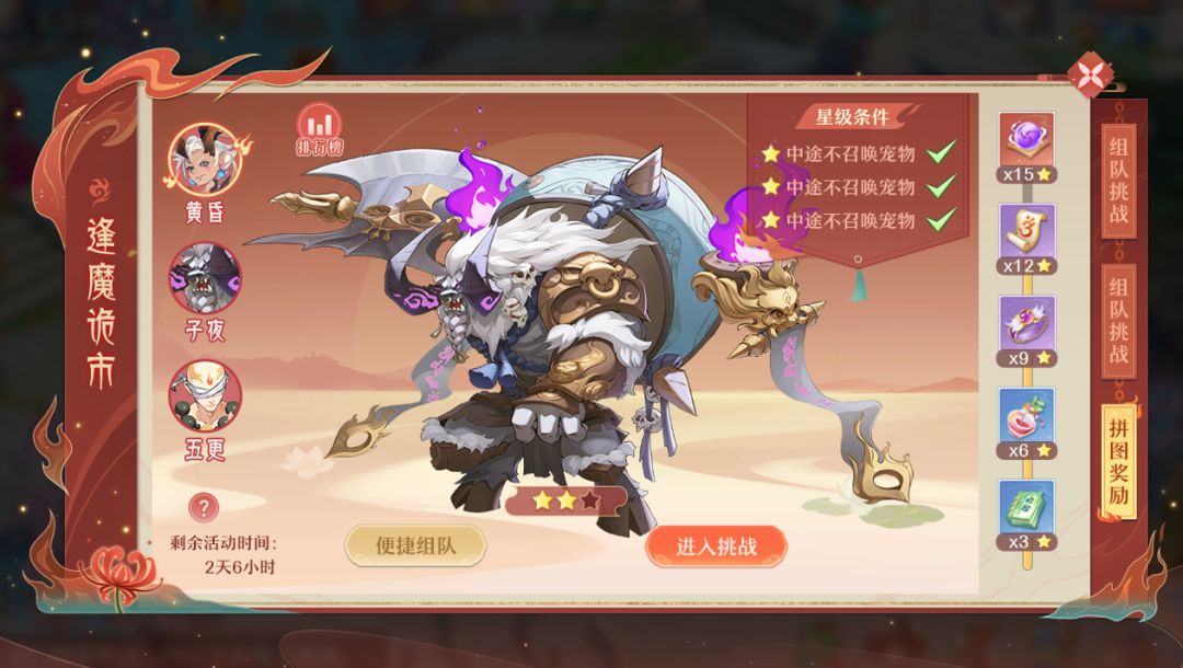 43级及以上的仙友单人、组队皆可参与,击败怪物收集星数,即可获取通关奖励,更有机会收集拼图碎片,获取终极大奖!