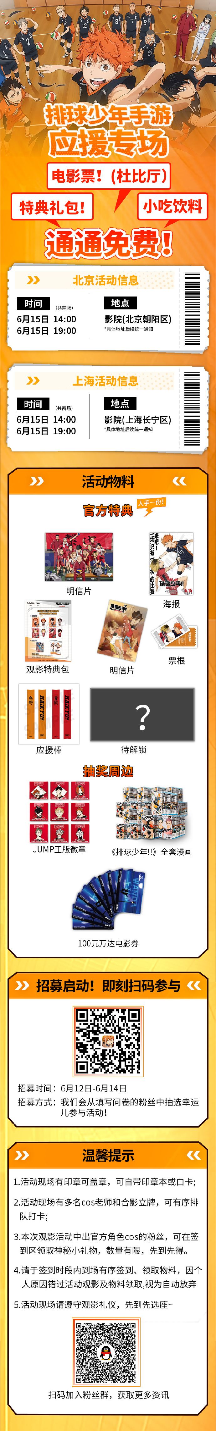 1、福利一:排人狂喜!排球少年手游应援专场开始报名