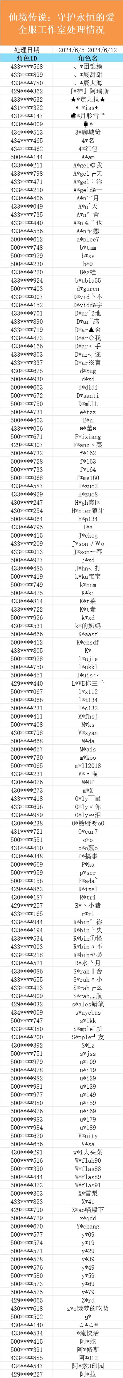 【2024/6/5-2024/6/12】守爱全服工作室与外挂账号处理公示
