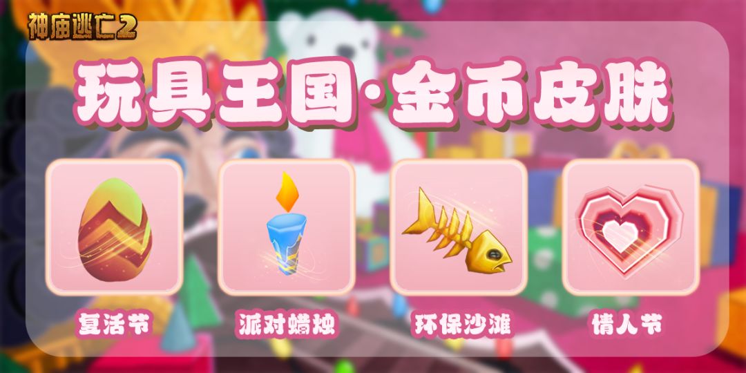 全新金币皮肤上线!【🐰复活节、🎂派对蜡烛、🐟环保沙滩、❤情人节】四种皮肤任君挑选~