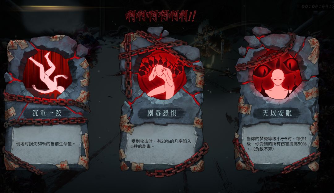 诅咒,是强制需要选择,每次都是3选1。而诅咒出现的方式,目前共分为两种,分别是:在击败boss时出现,每10层一次、另一种则是在你清明值耗尽时出现,随着后期清明值消耗越来越快出现的约频繁。