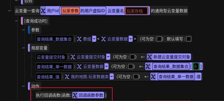 可在触编里的任意函数位置设置回调函数触发自定义相关动作或内容,也可以在云变量查询里进行该回调函数触发。