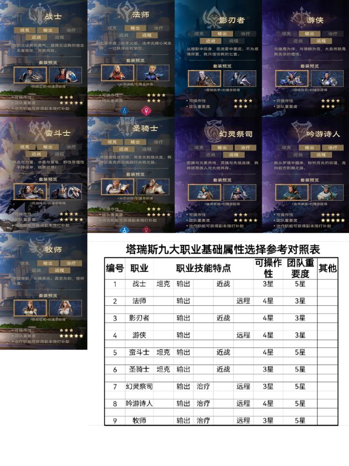 塔瑞斯九大职业基础属性和外观选择参考对照表!