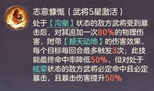 开局赠送怒攻(怒攻可以施加沟壑),让沟壑能给对方造成眩晕(需要魏国武将普攻目标),让对方处于沟壑时更脆弱,继续提升五星被动效果。