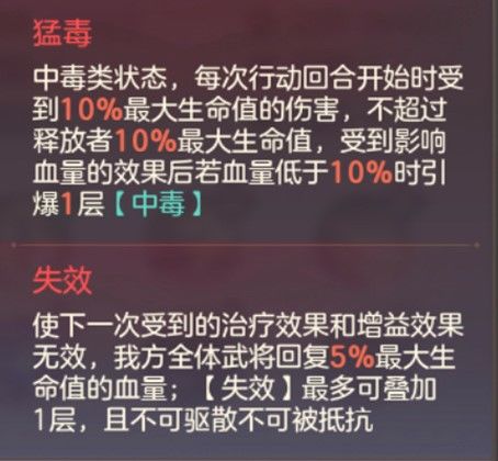 赋予“热毒”消失的补偿效果,回怒回血驱散,给对方继续施加“猛毒”,降低对方异常抗性。